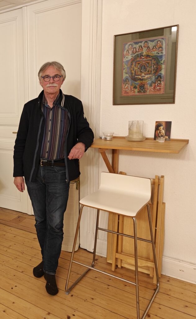 Herr Rüdiger Meier: Mein Name ist Rüdiger Meier. Ich praktiziere seit gut 20 Jahren Buddhismus und studiere dabei mit verschiedenen Lehrern, die mich unterstützen, unterrichten und mit denen ich Retreats mache. Ich bin verheiratet und habe die letzten 20 Jahre bis zu meiner Rente als Berufsschullehrer für Deutsch sowie Politik & Wirtschaft gearbeitet.